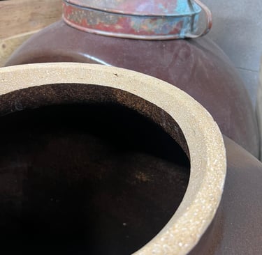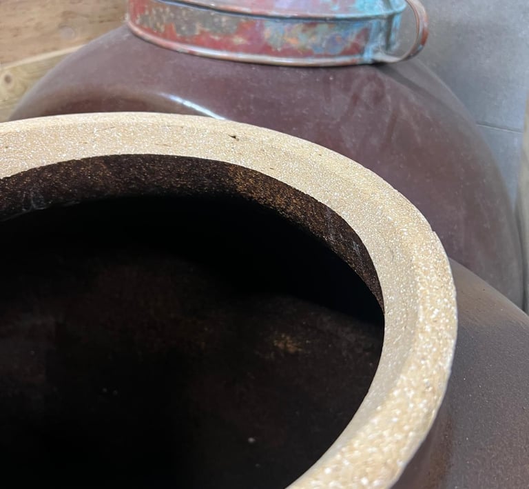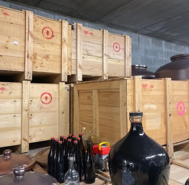 reposent en jarres de grès avant d’être mis en bouteilles où la fermentation